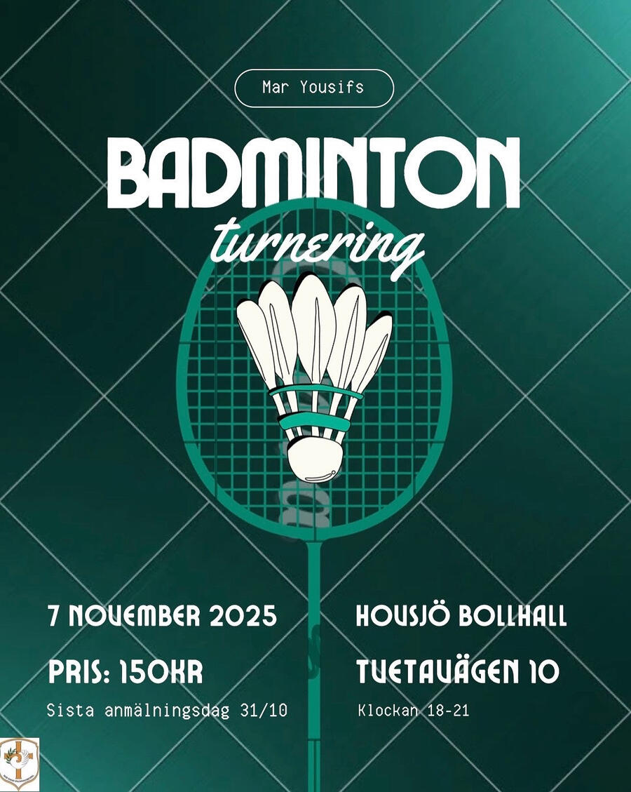 Hej allesammans! 🙌Fredagen den 7 november är det äntligen dags för badmintonturnering! 🏸