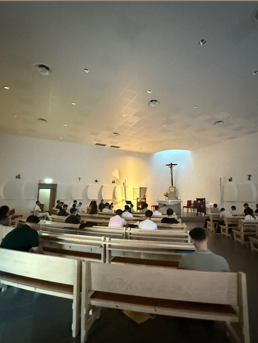 Hej allihop! 🙌Idag samlades vi i kyrkan för att be rosenkransen tillsammans, en vacker, stillsam och rogivande stund i gemenskap. 🥰Stort tack till det andliga utskottet för att ni ordnade denna meningsfulla aktivitet, och tack till alla som deltog och bidrog med sin närvaro. Så fint att få dela denna stund med er! 🤍☺️